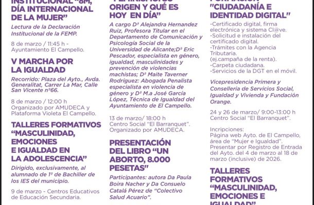 La conmemoración en El Campello del “8M”, Día Internacional de la Mujer, incidirá en la concienciación y la información acerca de la igualdad, la masculinidad y las emociones....
