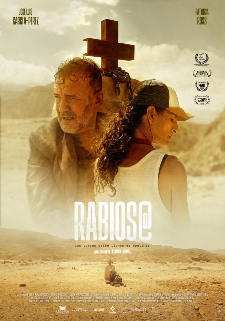 La tercera película que podrá verse el jueves 28 de mayo a las 21:15 horas será ‘Rabioso’ de Luis María Ferrández que en el reparto cuenta con José Luis García Pérez, Patricia Ross, Víctor Clavijo y Eva Almaya. ‘Rabioso’ es la historia de Marco quien el día de su boda amanece encadenado a una solitaria tumba en mitad del desierto. No recuerda nada, casi no tiene cobertura y en su cartera sólo han dejado un euro, una tarjeta del banco y la foto de su prometida. Pero cuando aparece Ventura, una vendedora ambulante, se desata la tormenta.