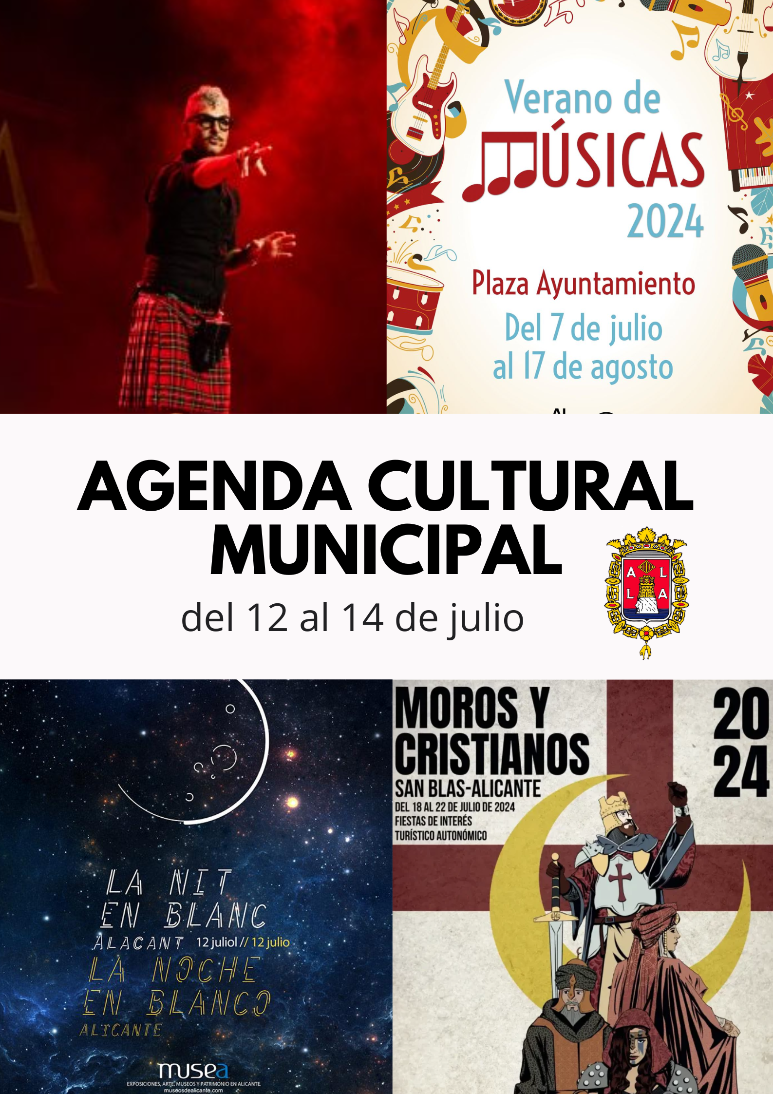 - Viernes 12, a las 21 h: Concierto Colla Federal de la Federació de Folklore D’Alacant, dentro del ciclo Festa i música y dirigida por Víctor Pérez San Roque