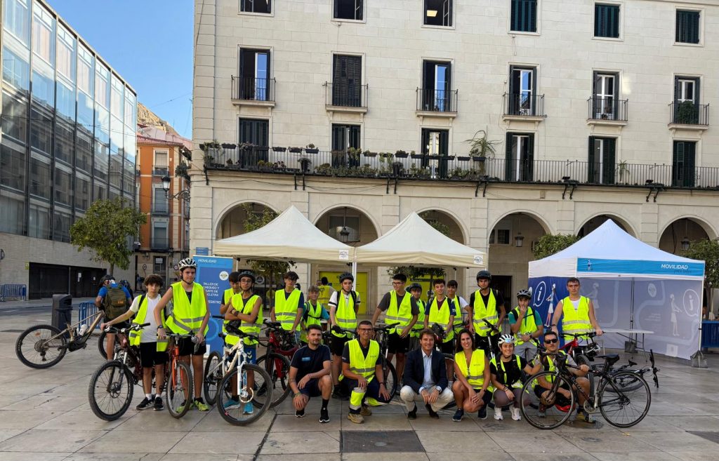 Un centenar de alumnos de educación secundaria de los IES Las Lomas, Mare Nostrum y Playa San Juan han participado este viernes en una nueva edición de la Biciescuela, una actividad enmarcada dentro de la Semana Europea de la Movilidad que se celebra en Alicante entre el 16 y 22 de septiembre. Los estudiantes se han familiarizado durante esta actividad con el manejo de la bicicleta realizando una ruta por la ciudad, que ha finalizado en la plaza del Ayuntamiento y que ha contado con colaboración de la Brigada Ciclista de la Policía Local.
