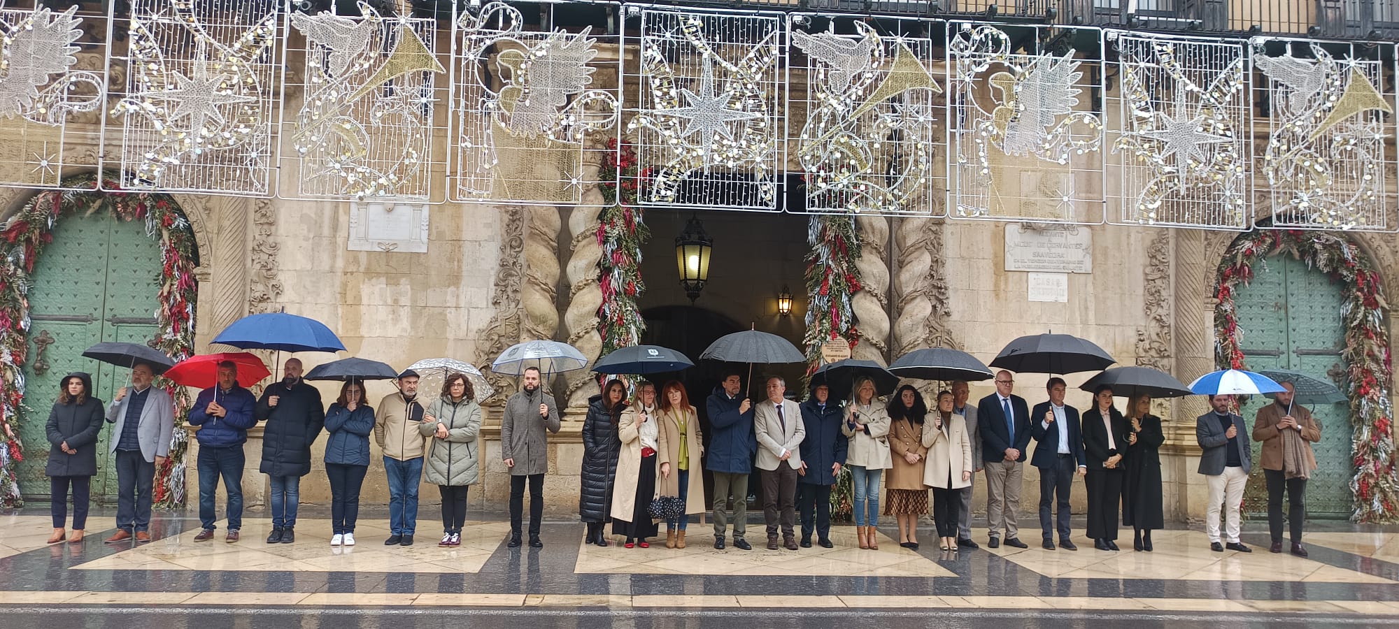 En la concentración bajo la lluvia en la Plaza del Ayuntamiento han participado concejales de todos los grupos de la corporación municipal, representantes sindicales y ciudadanos. “Alicante vuelve a expresar su rechazo y repulsa más contundentes de la violencia de género y mantiene su llamamiento a unir fuerzas entre toda la sociedad y alzar la voz contra cualquier comportamiento machista”, ha declarado la portavoz del equipo de Gobierno, Cristina Cutanda.