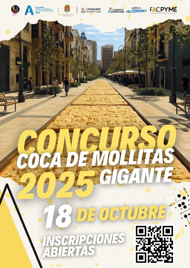 Alicante, 14 de octubre de 2025. La coca de mollitas de récord de Alicante se colocará este sábado 18 de octubre en la avenida de la Constitución en un evento que contará con música y animación desde las 18 a las 21 horas. La actividad está diseñada para que los alicantinos celebren el nombramiento de Alicante como Capital Española de la Gastronomía 2025 y puedan degustar gratuitamente este típico producto alicantino.