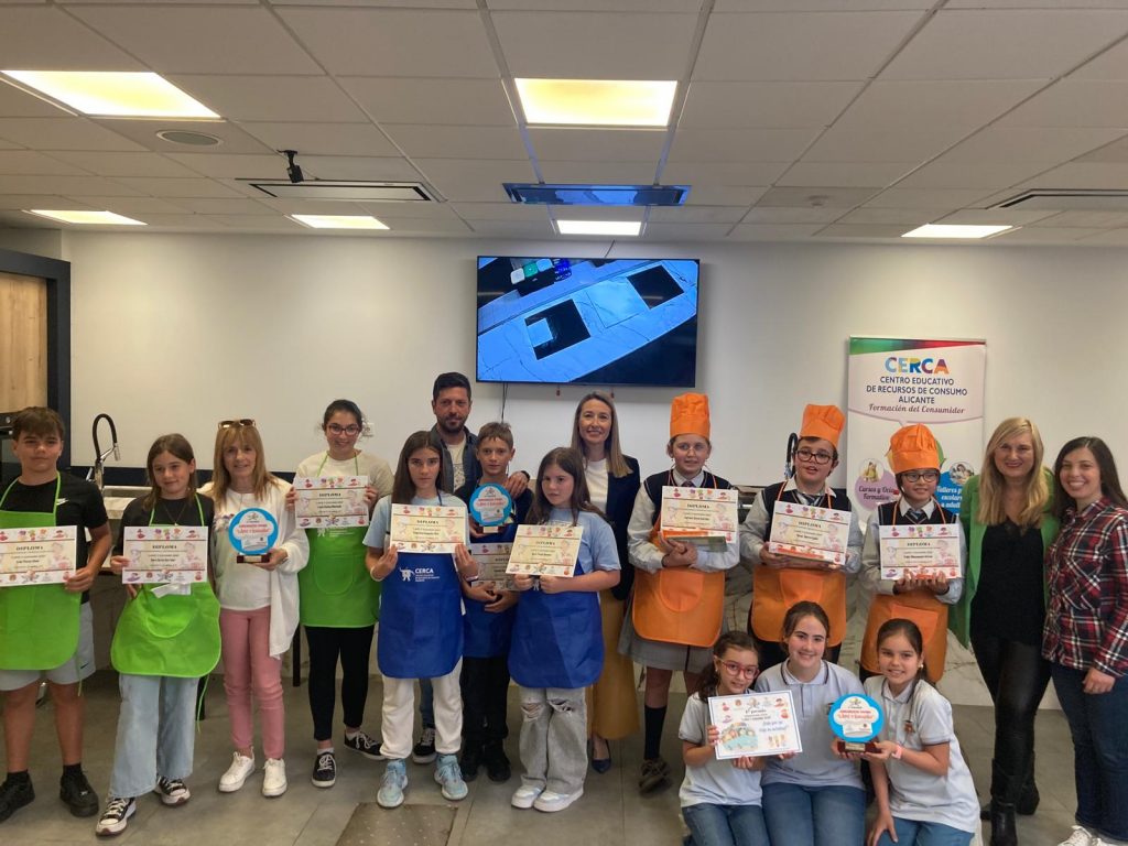 La concejala de Consumo y Mercados, Lidia López, ha entregado este viernes el primer premio al colegio San Juan Bautista del concurso de cocina ‘Lápiz y Cuchara’ impulsado por el Ayuntamiento de Alicante para promover la alimentación y el consumo responsable, sostenible y saludable entre la población escolar, que ha sido el ganador de la edición 2023 seguido de los dos equipos del colegio El Palmeral. La gran final del concurso de cocina ha tenido lugar en el Centro Educativo de Recursos de Consumo – CERCA- promotor del certamen, en la que han cocinado los tres equipos seleccionados un plato de carrot cake con frosting y otro de quinoa con pesto, pollo y manzana.