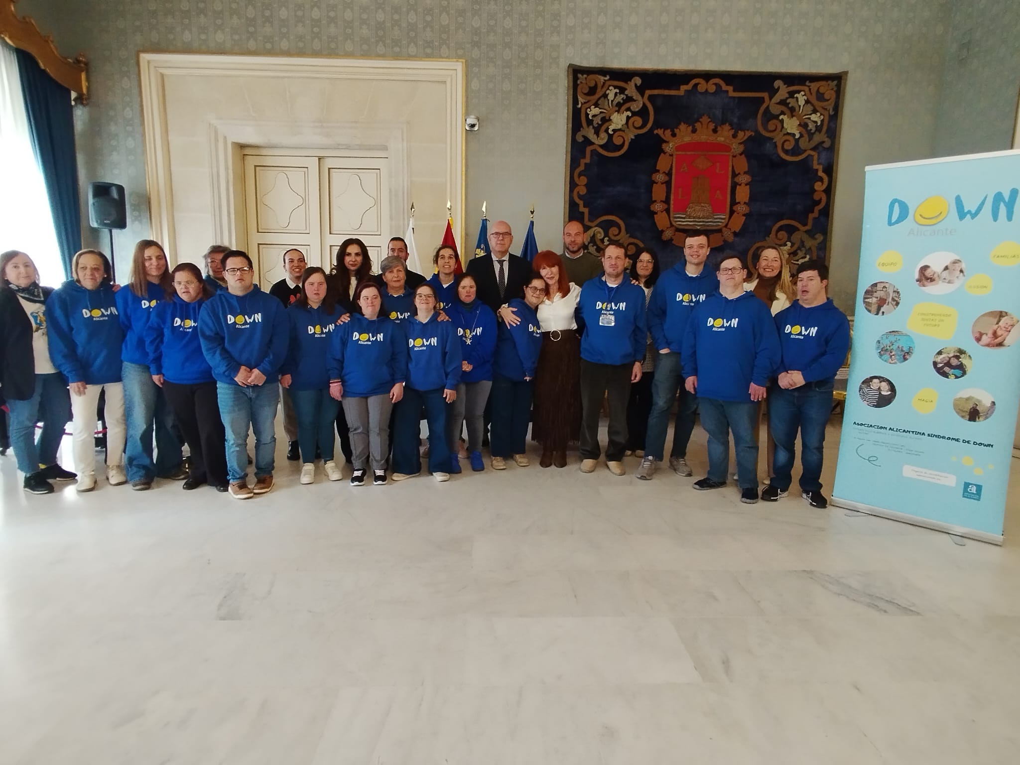 El Ayuntamiento de Alicante se ha sumado este viernes a la conmemoración del Día Mundial del Síndrome de Down en un acto celebrado en el Salón Azul, al que han asistido el vicealcalde, Manuel Villar, la concejala de Bienestar Social y Derechos Públicos, Begoña León, y varios miembros de la Corporación municipal, junto a la presidenta de la asociación Down Alicante, María Teresa Rodríguez, y algunos socios. Durante su intervención, León ha resaltado la importancia de “seguir trabajando juntos con el fin de promover la inclusión desde todos los ámbitos de la sociedad” y ha señalado que “nuestro deber como sociedad garantizar que todas las personas, incluidas aquellas con Síndrome de Down, tengan acceso a la educación, el empleo, la atención médica y el apoyo necesario para llevar vidas satisfactorias”.