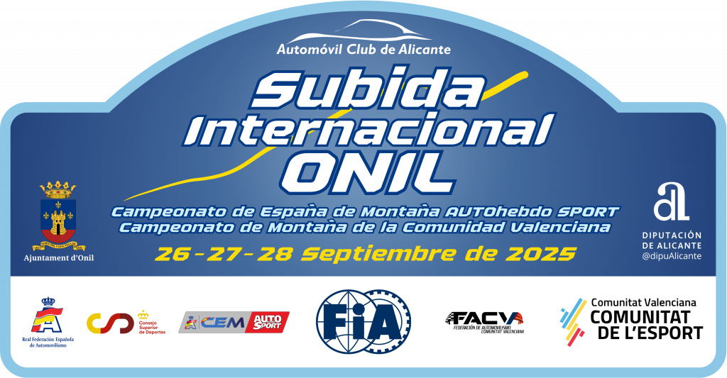 Los días 26, 27 y 28 de septiembre tendrá lugar en Onil (Alicante) la “Subida Internacional de Onil” prueba organizada por el Automóvil Club de Alicante, Club decano del Automovilismo en la Comunitat Valenciana, fundado en 1930.