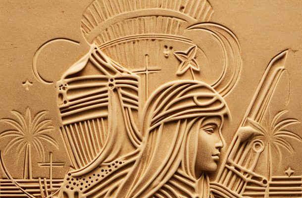 El artista ganador señala que con su obra ha querido plasmar un posible dibujo, realizado sobre la arena de El Campello. Fusionando el caballero cristiano y la mujer mora, las palmeras como símbolo de El Campello, y sobre todo la torre, uno de sus iconos más singulares. “Una imagen limpia, fresca, y novedosa, fusionando la tradición, El Campello, y su fiesta”. Ángel Ligero Martínez es de Alfaro (La Rioja) y ha ganado más de 250 premios por toda España.