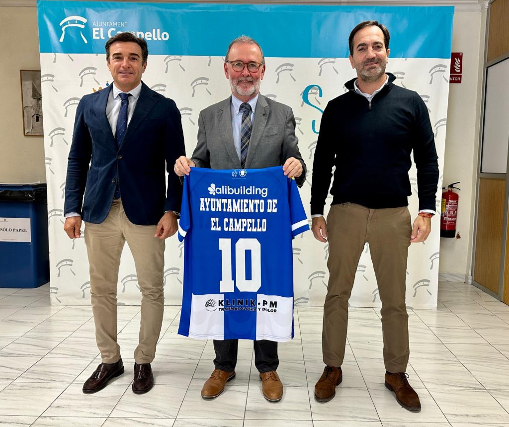 Las entidades rubricaron el convenio, que inicialmente tiene un periodo de vigencia de cuatro años. Estamparon su firma el alcalde, Juanjo Berenguer, y el presidente-consejero delegado del club, Carlos Parodi, que hizo entrega al primer edil de una camiseta del equipo blanquiazul, con el número 10 e identificada en su trasera con “Ayuntamiento de El Campello”. En el acto estuvo también presente el concejal de Deportes, Marcos Martínez.