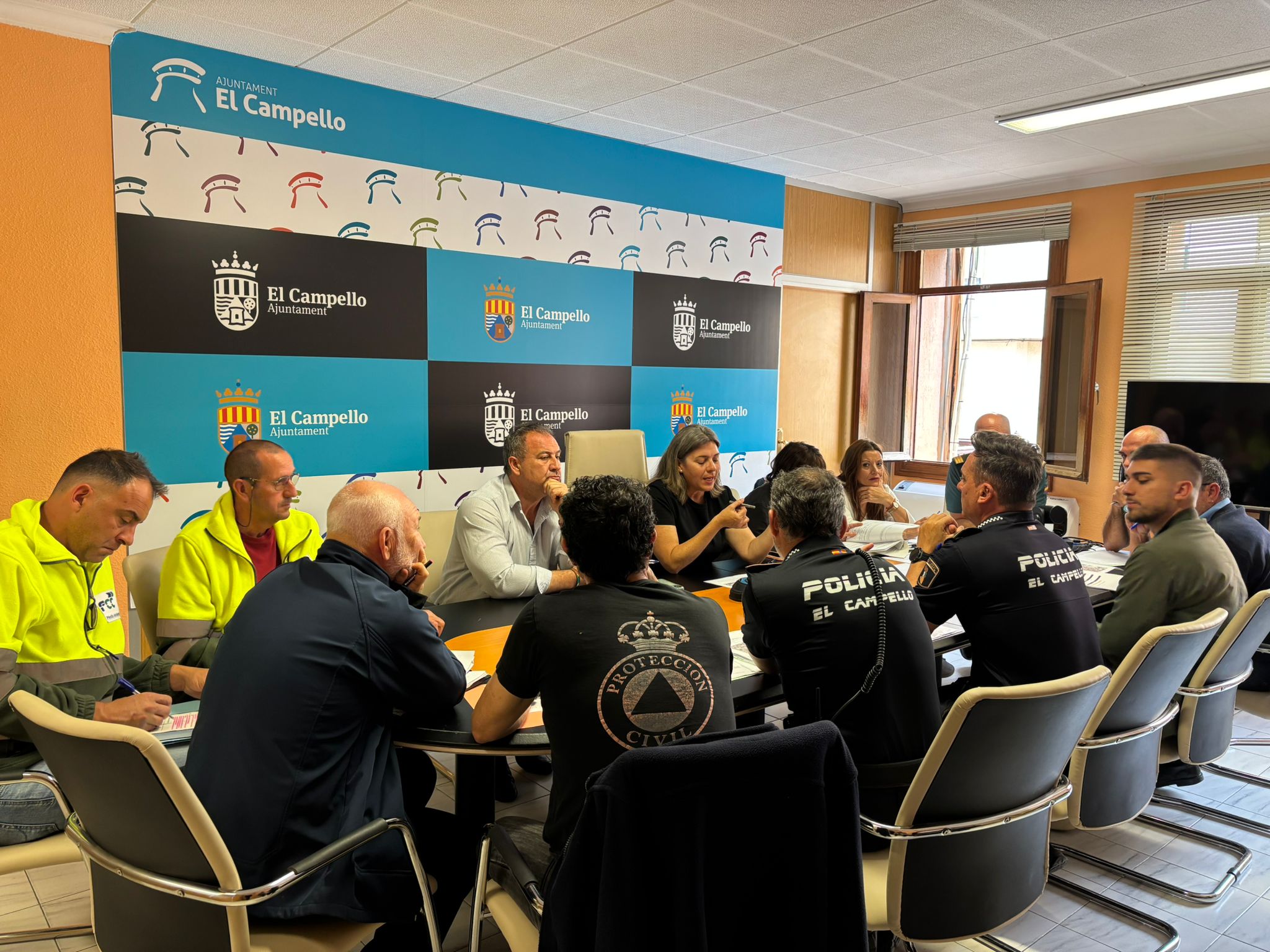 Reunión con la más amplia representatividad. Ayuntamiento (representado por los concejales de Seguridad y Fiestas y Tradiciones, Rafa Galvañ y Marisa Navarro respectivamente), Junta Festera de Moros y Cristianos, mandos de la Policía Local y la Guardia Civil, y el jefe de Protección Civil de El Campello, se han reunido hoy en la Casa Consistorial para ultimar el dispositio de seguridad que se activará desde el viernes al mediodía hasta el domingo por la tarde, al objeto de garantizar que todo discurra con absoluta normalidad durante la celebración del “Mig Any” festero.
