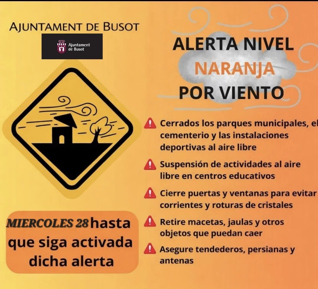 Busot alerta del nivel naranja por fuertes rachas de vientos