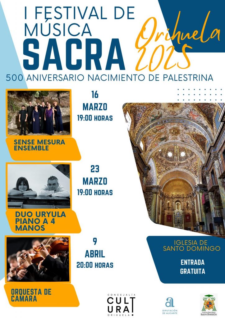 EI I Festival de Música Sacra tendrá lugar en Orihuela con motivo del 500 aniversario del nacimiento de Giovanni Pierluigi da Palestrina, “un evento dedicado a la música sacra y a la figura del compositor italiano”, ha declarado la edil de Cultura, Anabel García.