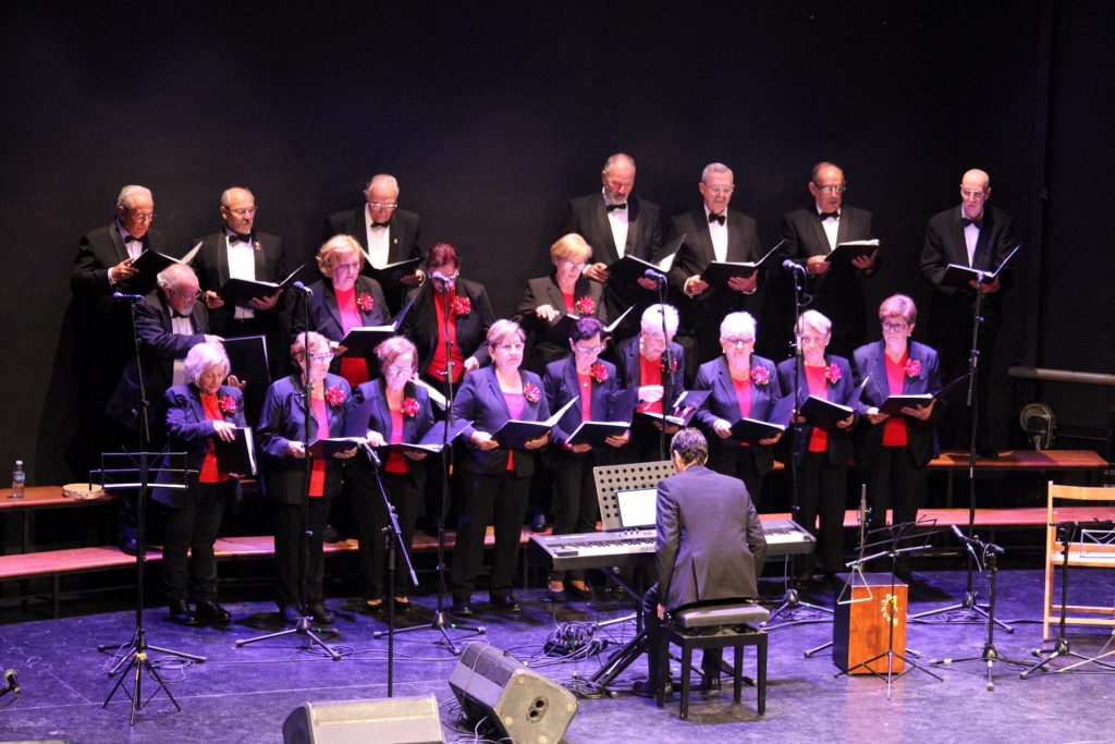 Como broche final, las tres formaciones se unieron para interpretar el tradicional “Riu, riu, chí”, una pieza popular que llenó el auditorio de voces combinadas y cerró el evento entre aplausos prolongados.