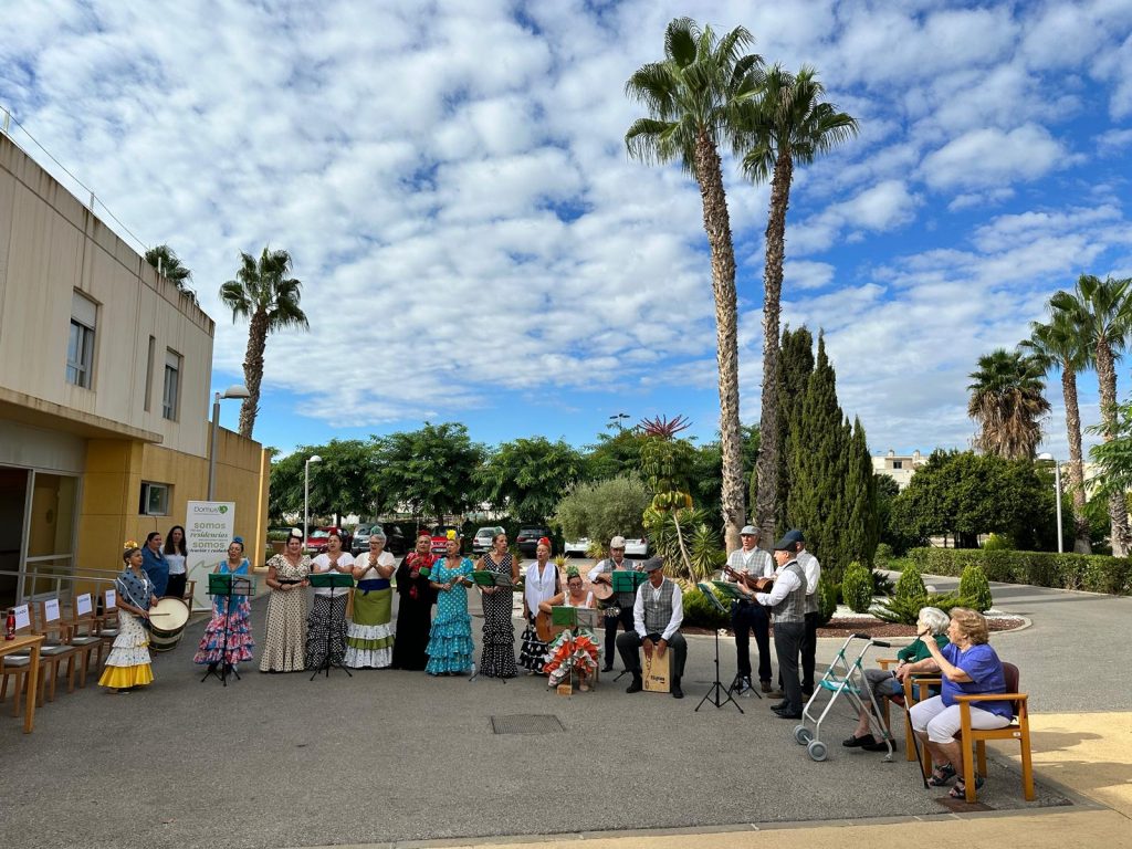 La tercera edición de los premios de la residencia “Domus Vi” ha resultado hoy especialmente emotiva, y por diversas razones. Bajo el título “Ser mayor tiene premio”, el centro ha organizado un acto musical con ambiente flamenco, con una aplaudida actuación del coro “Romero verde” de la Asociación cultural “Amigos rocieros” de El Campello, que ha alegrado la mañana a los usuarios, familiares y personal del centro con rumbas y sevillanas, finalizando cantando a la Virgen del Rocío.