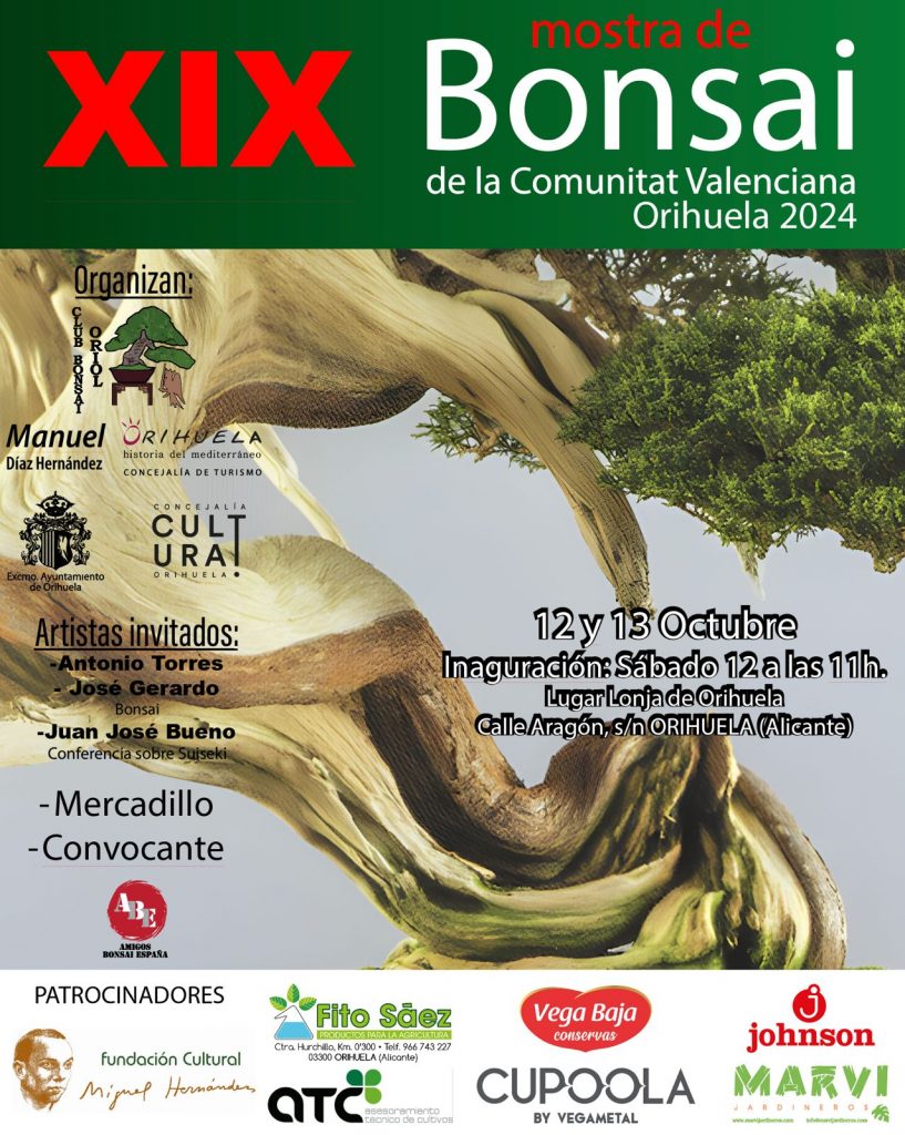 La Mostra de Bonsái 2024, tendrá lugar los días 12 y 13 de octubre en la La Lonja de Orihuela, un evento anual que reúne a apasionados y expertos del bonsái.