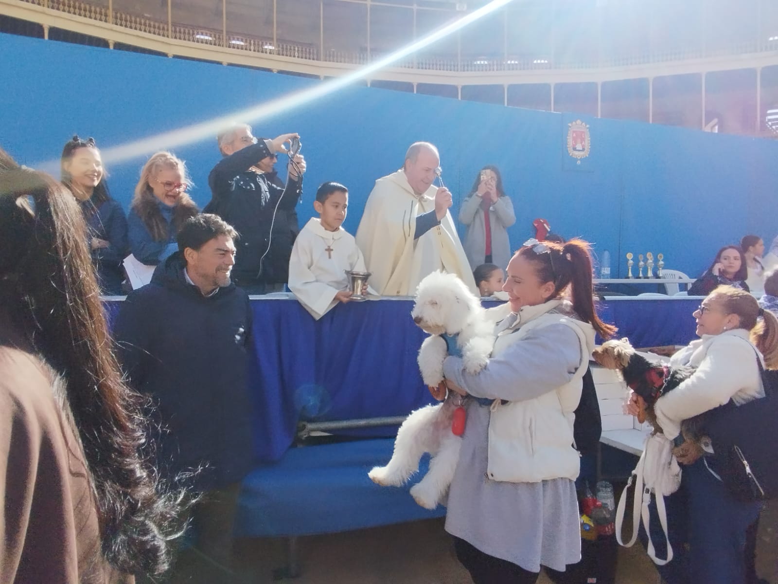 Alicante, 25 de enero de 2025.- La Bendición de Animales, que se ha celebrado al mediodía de este domingo en la plaza de toros de Alicante, ha cerrado el programa de actos del Porrate de San Antón, “con la mayor participación de los últimos años”, como ha afirmado Rocío Santacruz, la presidenta de la Comisión de Fiestas, ya que miles de familias han acudido con sus mascotas. Ha sido el párroco de Nuestra Señora de la Misericordia, Manuel Llopis, quien ha ido bendiciendo las numerosas mascotas que le han ido acercando sus propietarios a un escenario situado en el ruedo del coso taurino.