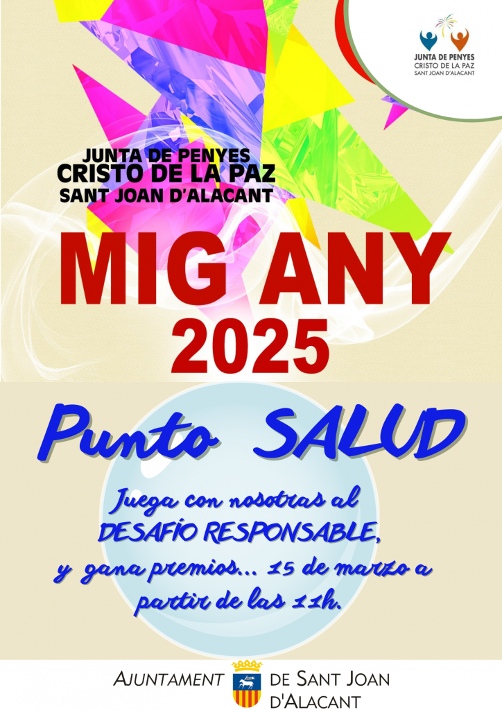 La Concejalía de Sanidad de Sant Joan d’Alacant, a través de su Unidad de Prevención Comunitaria de Conductas Adictivas (UPCCA), vuelve a instalar el Punto Salud este sábado, 15 de marzo, con motivo de la celebración del Mig Any de las Fiestas del Cristo de la Paz.