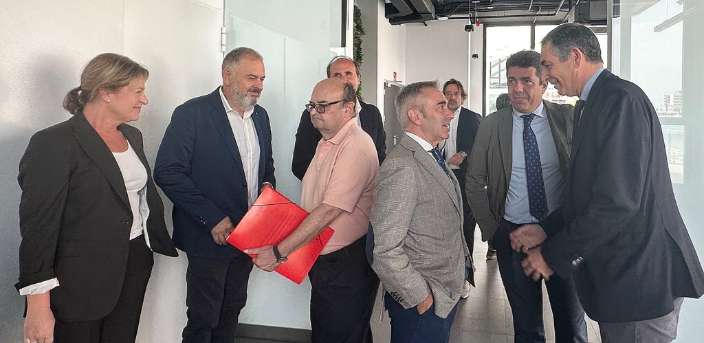El edificio del Distrito Digital en el Muelle 5 del Puerto de Alicante ha sido el escenario de este encuentro multilateral, presidido por el president de la Generalitat, Carlos Mazón, en el que también han participado representantes del Sindicado Central de Regantes del Acueducto Tajo-Segura (SCRATS).