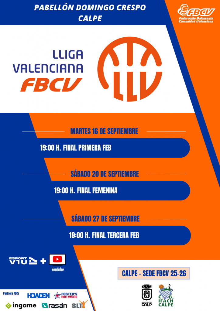 El escenario será Calpe, ciudad volcada con el deporte que repite como anfitriona de todas las Finales de Lliga Valenciana en categorías nacionales con el acuerdo alcanzado entre la Federación de Baloncesto de la Comunitat Valenciana (FBCV) y el Ayuntamiento de Calpe con la colaboración del CB Ifach Calpe.