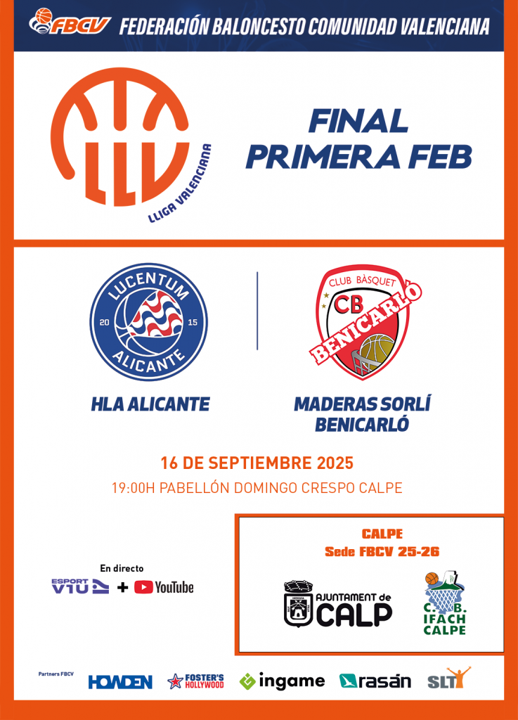 La Lliga Valenciana 2025 se prepara para vivir su primera Final de la temporada. Será este martes 16 de septiembre con la disputa de la Final Primera FEB entre HLA Alicante y Maderas Sorlí Benicarló.