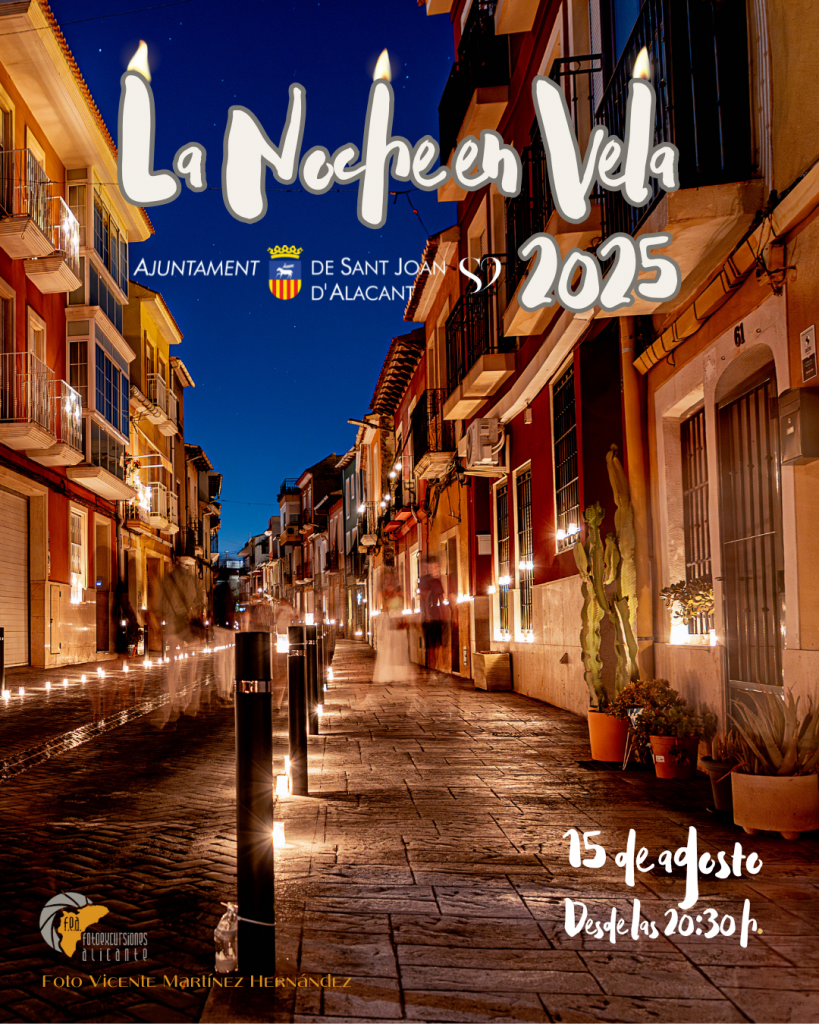 Todo preparado para que Sant Joan d’Alacant vuelva a vivir el evento más multitudinario de todo el año. El 15 de agosto, desde las 20:30 horas, ‘La Noche en Vela’ volverá a llenar la población de encanto y belleza al estar todo el centro urbano únicamente iluminado con la luz de 20.000 velas. Si en 2023, su primera edición, atrajo hasta Sant Joan a unas 10.000 personas, y en 2024 la cifra se elevó hasta 15.000 participantes, este año, las expectativas son todavía más positivas, por lo que esta edición se han ampliado las actividades, repartidos por un recorrido más extenso, con más calles del municipio iluminadas solo con la luz de las velas. Escenarios al aire libre que acogerán actuaciones de primer nivel como las de Inma Serrano, Albaladre, ‘Quimera’ de A3 Danza o el pianista David Gómez.