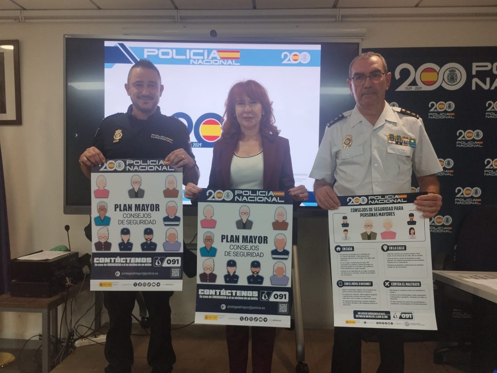 La Policía Nacional iniciará este jueves, 16 de octubre, en Juan XXIII, una ronda de charlas sobre seguridad en los 19 centros de mayores municipales de Alicante, con los objetivos fundamentales de prevenir que este colectivo vulnerable sea víctima de estafas y otros delitos e informar sobre cómo actuar si se producen. La campaña se inscribe en el marco del ‘Plan Mayor. Consejos de seguridad’ y la han presentado este miércoles el subdelegado del Gobierno, Juan Antonio Nieves, el comisario jefe provincial, de Alicante, Manuel Lafuente, y la concejala de Mayores, Begoña León, en un acto al que han asistido representantes de los centros de mayores de la ciudad.