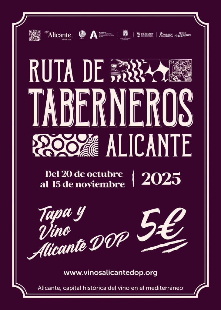 En paralelo a este congreso la iniciativa “Ruta de Taberneros”, que se prolongará del lunes 20 de octubre al sábado 15 de noviembre, está impulsada por el Patronato de Turismo Alicante City&Beach, Turisme Comunitat Valenciana y el Consejo Regulador Denominación de Origen Vinos de Alicante.