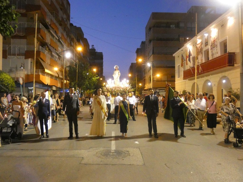 Una vez en la iglesia se realizó la procesión en honor a El Salvador, el patrón del municipio. Las calles de Mutxamel ya se han llenado de música y los cargos festeros ya han realizado sus primeros pasacalles y desfiles solemnes por la rambla del municipio.