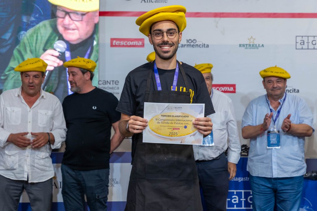 El tercer clasificado ha sido Alejandro Oliveira de La Falda de Chamberí que ayer ganó el XVIII Campeonato de Tortilla de Patatas – Trofeo Tescoma. En esta ocasión ha presentado una tortilla de Betanzos con grelos y chorizo cebollero de Lalín.