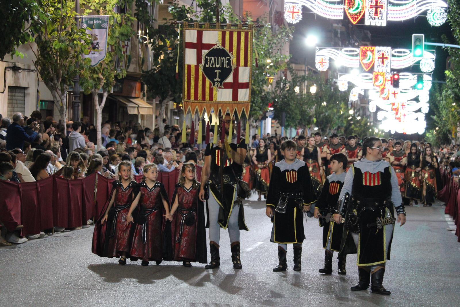 El desfile tiene muchos protagonistas, pero son 8 las personas que concitan toda la atención: los cargos. Este año ostentan las capitanías la comparsa Marinos por el bando cristiano, y Marrocs por el moro. Ellos desfilan en carroza y cierran con sus boatos cada bloque de la entrada.