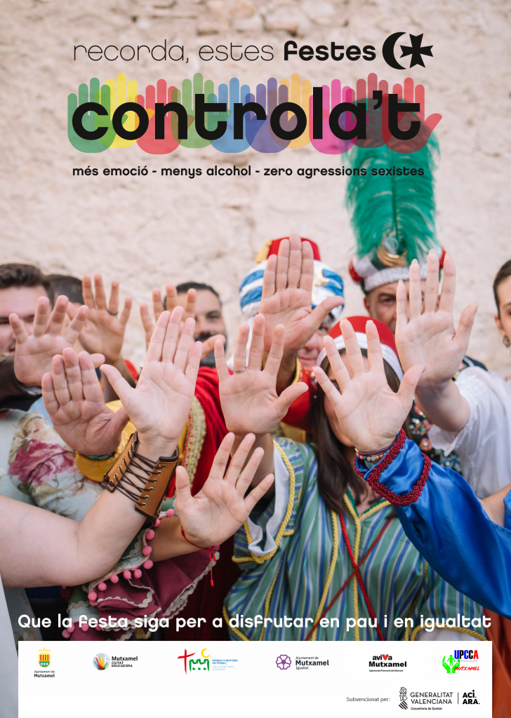 Mutxamel, 5 de septiembre de 2025. La Unidad de Prevención Comunitaria en Conductas Adictivas (UPCCA) de Mutxamel y la Concejalía de Igualdad han puesto en marcha una nueva edición de la campaña “Recorda aquestes festes, Controla’t: més emoció, menys alcohol, zero agressions sexistes”, una iniciativa que busca concienciar a la población sobre el consumo responsable de alcohol y la necesidad de rechazar cualquier forma de violencia de género y agresiones sexistas durante las Fiestas de Moros y Cristianos 2025.