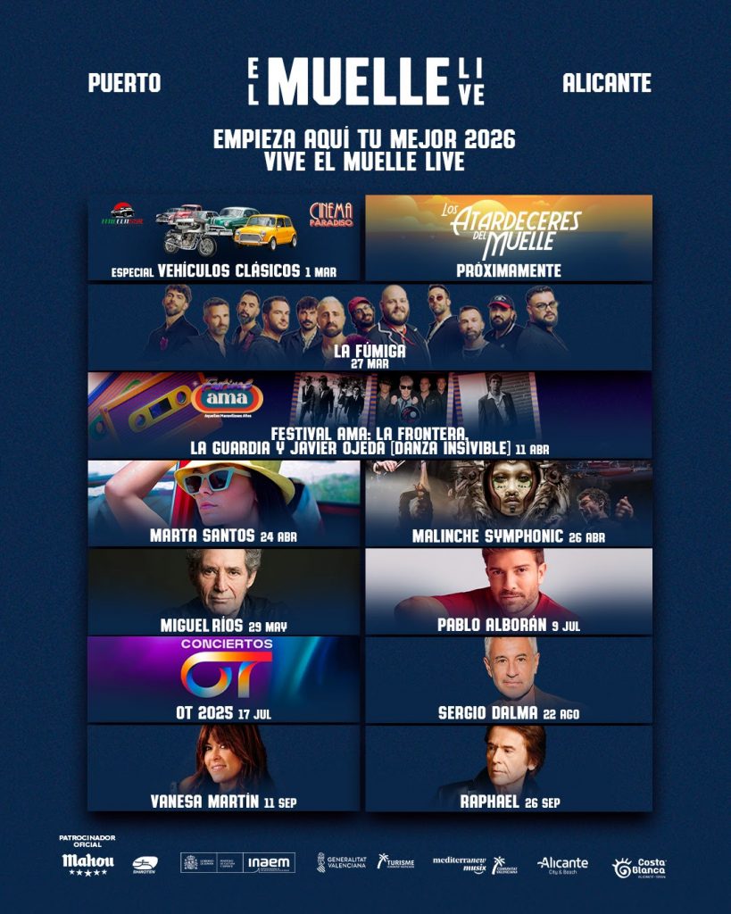 El Muelle Live se consolida como uno de los grandes espacios culturales y de ocio de Alicante con una ambiciosa programación para 2026.