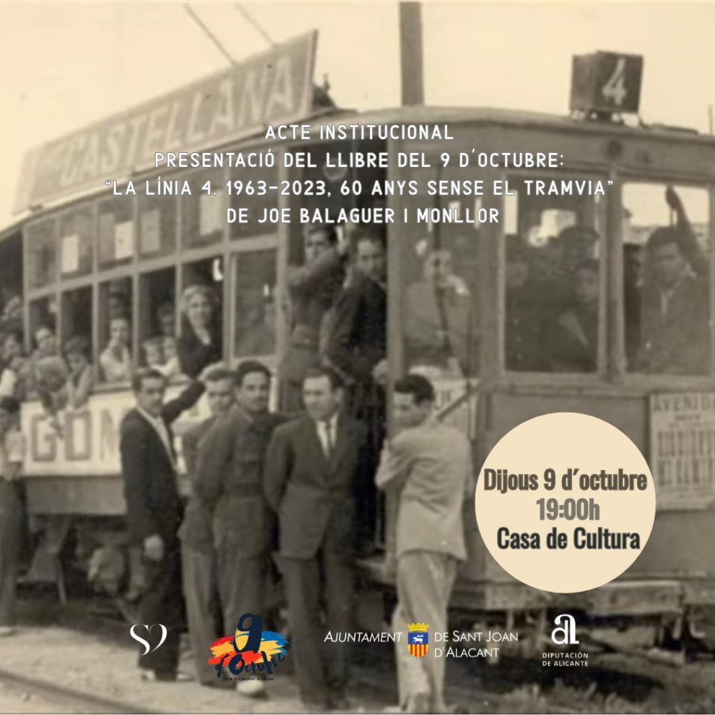 Un Nou d’Octubre de cultura y tradición. La programación preparada por la Concejalía de Cultura con motivo del Día de la Comunitat Valenciana incluye actos basados en la música y el deporte tradicional y autóctono, a lo que se une la publicación de un nuevo libro editado por el Ayuntamiento de Sant Joan d’Alacant para conmemorar el Nou d’Octubre, con trabajos sobre temática y contenidos locales. En este caso, el volumen número 27 de esta colección, comenzada en 1997, se titula ‘La Línia 4 (1963-2023, 60 anys sense el tramvia)’, escrito en valenciano por Joe Balaguer.