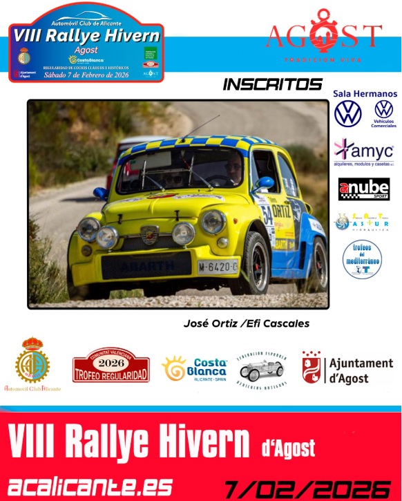 VIII Rallye Hivern d’Agost Costa Blanca 2026. Increíble inicio de temporada del Trofeo de Regularidad de la Comunidad Valenciana 2026, con una brillante inscripción de 41 equipos