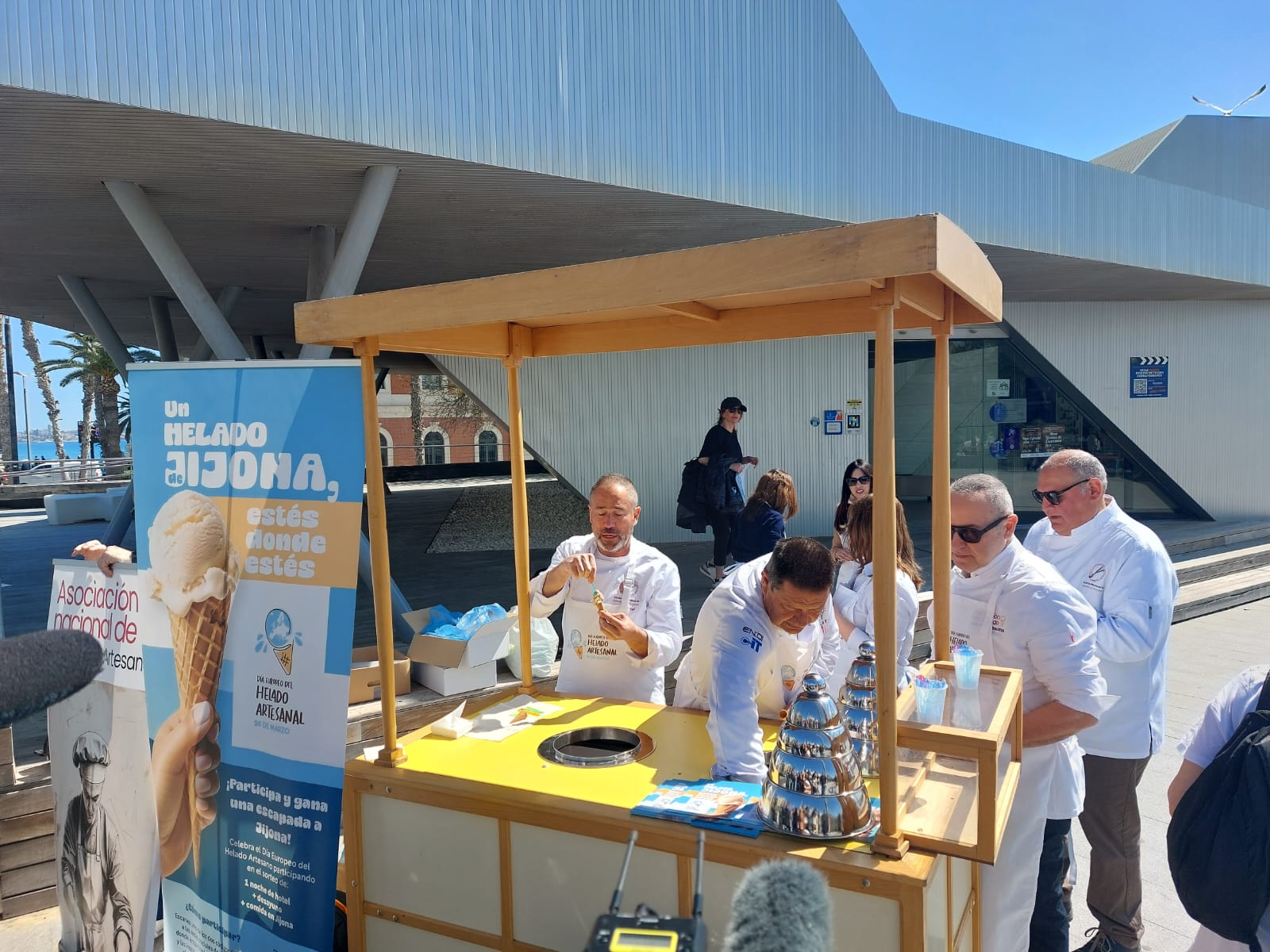 Xixona ha celebrado este martes en Alicante el Día Europeo del Helado Artesano con un acto abierto al público en el que se ha repartido helado artesanal, con el objetivo de reivindicar la tradición heladera del municipio y el papel de los maestros heladeros de origen jijonenco, presentes en heladerías de todo el país.