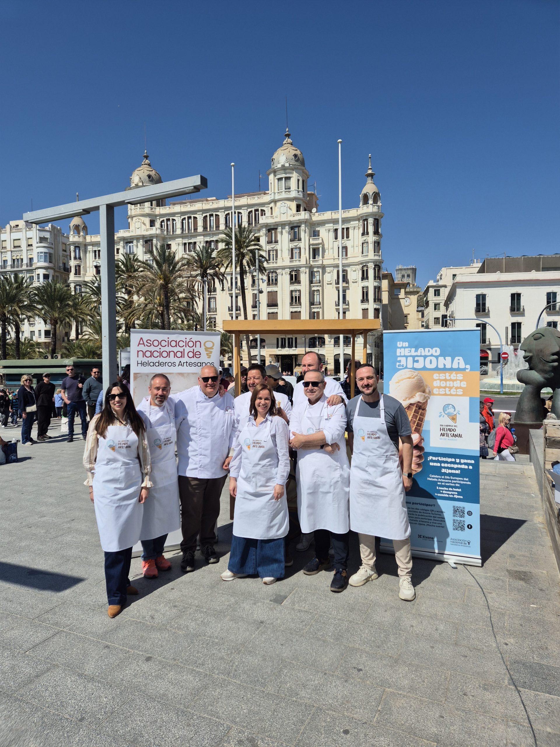 El encargado de elaborar los helados que se han podido degustar esta mañana en Alicante ha sido el maestro heladero jijonenco Iván Ivars, con heladería en El Campello, cuya familia se dedica al helado desde 1979. Ivars comenzó en el oficio en 1991, con tan solo 17 años, y ha preparado para esta ocasión una selección de sabores que combinan tradición e innovación, como el helado de turrón de Jijona y el de mantecado, junto al sabor oficial del año, “Gelato Melody”, elegido como sabor del Gelato Day 2026. El reparto se ha realizado desde un carrito artesanal, propiedad de la asociación, que recuerda a los primeros carros de los heladeros que recorrían las plazas de los pueblos durante el verano y las fiestas populares.