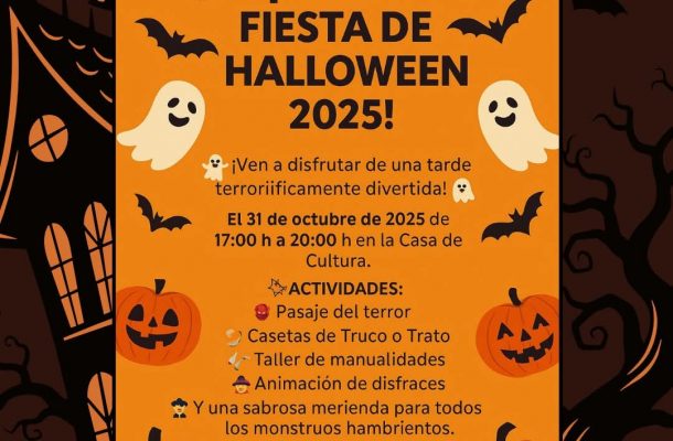 ¡Ven a disfrutar de una tarde terroríficamente divertida! El 31 de octubre de 2025 de 17h a 20h en la Casa de Cultura. Actividades: – Pasaje del terror...